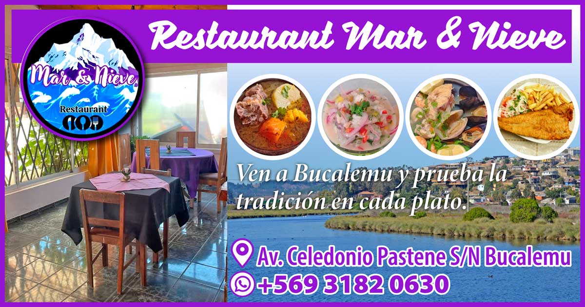 Si visitas Bucalemu, no dejes pasar la oportunidad de conocer Restaurant Mar & Nieve. Descubre un rincón donde la tradición se sirve en cada plato, y donde los sabores del mar y la tierra se encuentran con autenticidad y cariño.